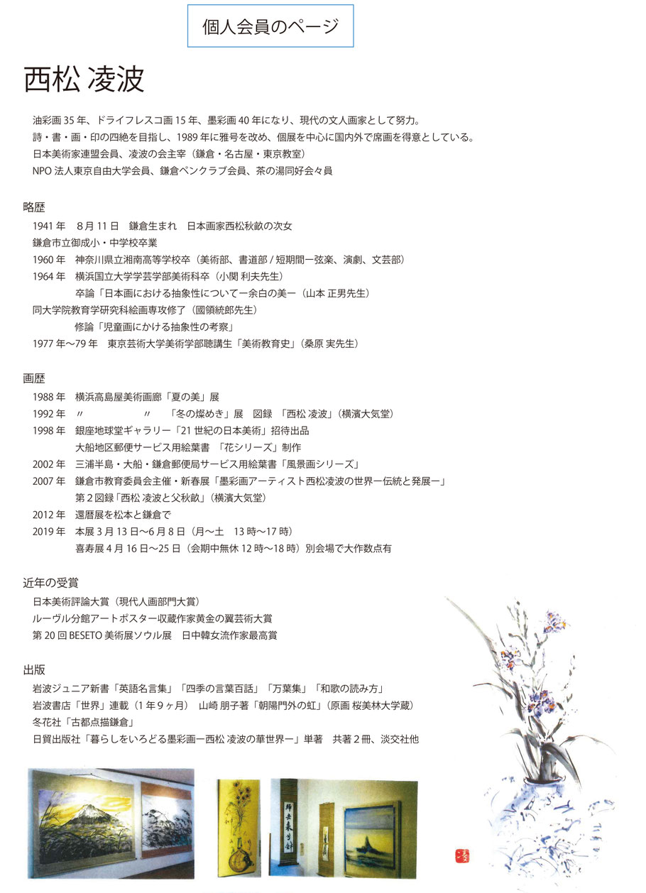 鎌倉美術連盟は、鎌倉・湘南地域を拠点とする美術団体が加盟している連盟です。鎌倉市民文化祭、鎌倉市展、鎌倉市新春ギャラリー展など鎌倉市の文化行政への参加、美化運動、チャリティ絵画展などの社会福祉事業への参加などを通じて、鎌倉市の文化活動、社会福祉活動に貢献しております。